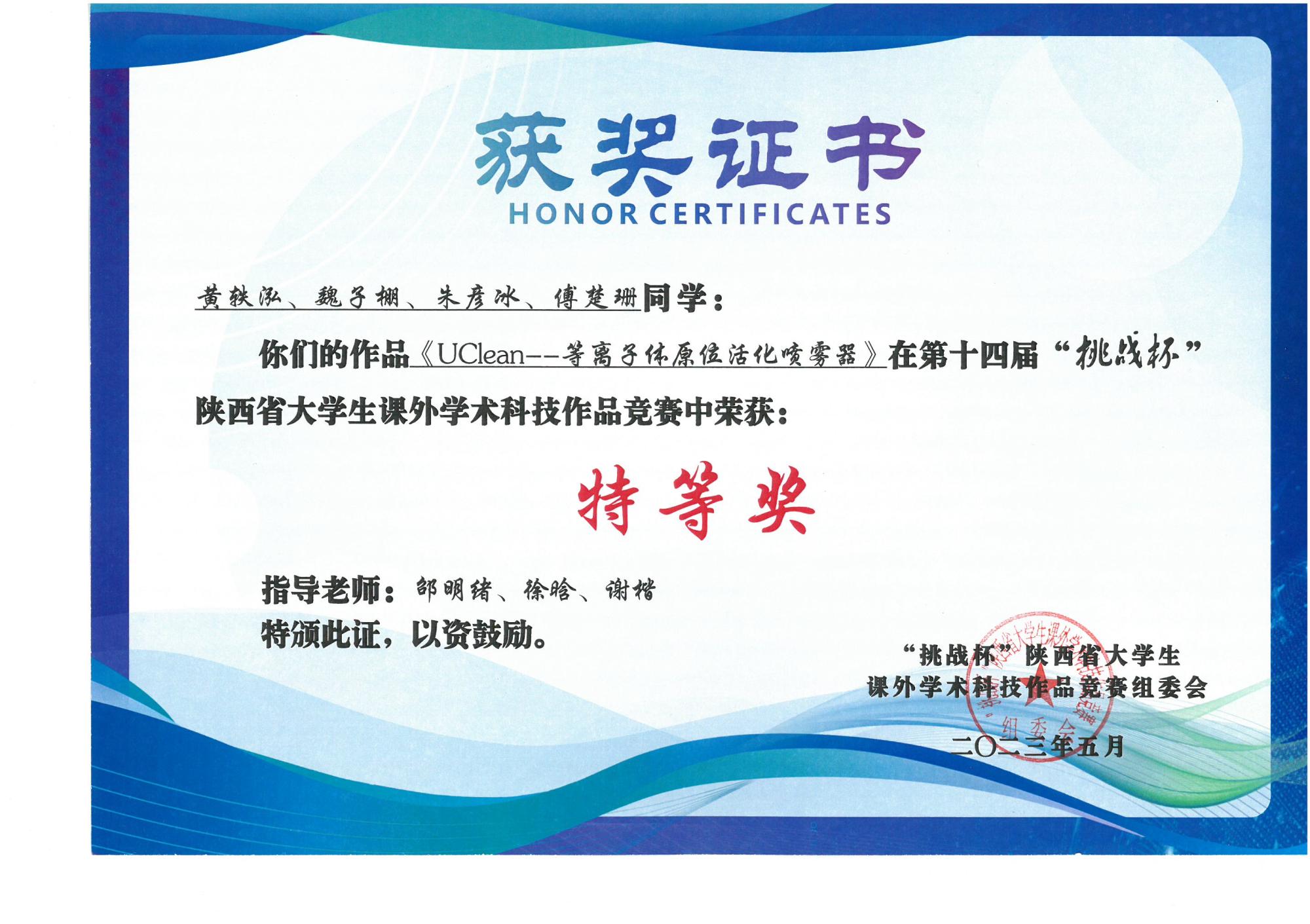 (通讯员 户昱炜)近日,第十四届“挑战杯”陕西省老员工课外学术科技作品竞赛在长安大学落下帷幕,由beet365师生完成的《“无界”——全场景户外组网通讯设备》和《U-Clean ——等离子体原位活化喷雾器》两件作品在本届大赛中斩获特等奖。