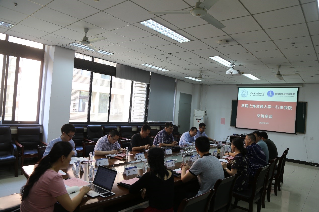 (尚保强)为进一步推进校际交流与科研项目合作,beet365与上海交通大学航空航天公司交流座谈会于9月7日上午在G251会议室举行,上海交通大学航空航天公司常务副经理吴树范教授、副经理战兴群教授、经理助理邵晓巍研究员等一行七人与空间公司执行经理刘彦明教授、教育部重点实验室主任李小平教授、副经理石磊副教授、测控通信系主任谢楷教授、导航控制系主任张华副教授以及部分项目组骨干教师参加了座谈交流。