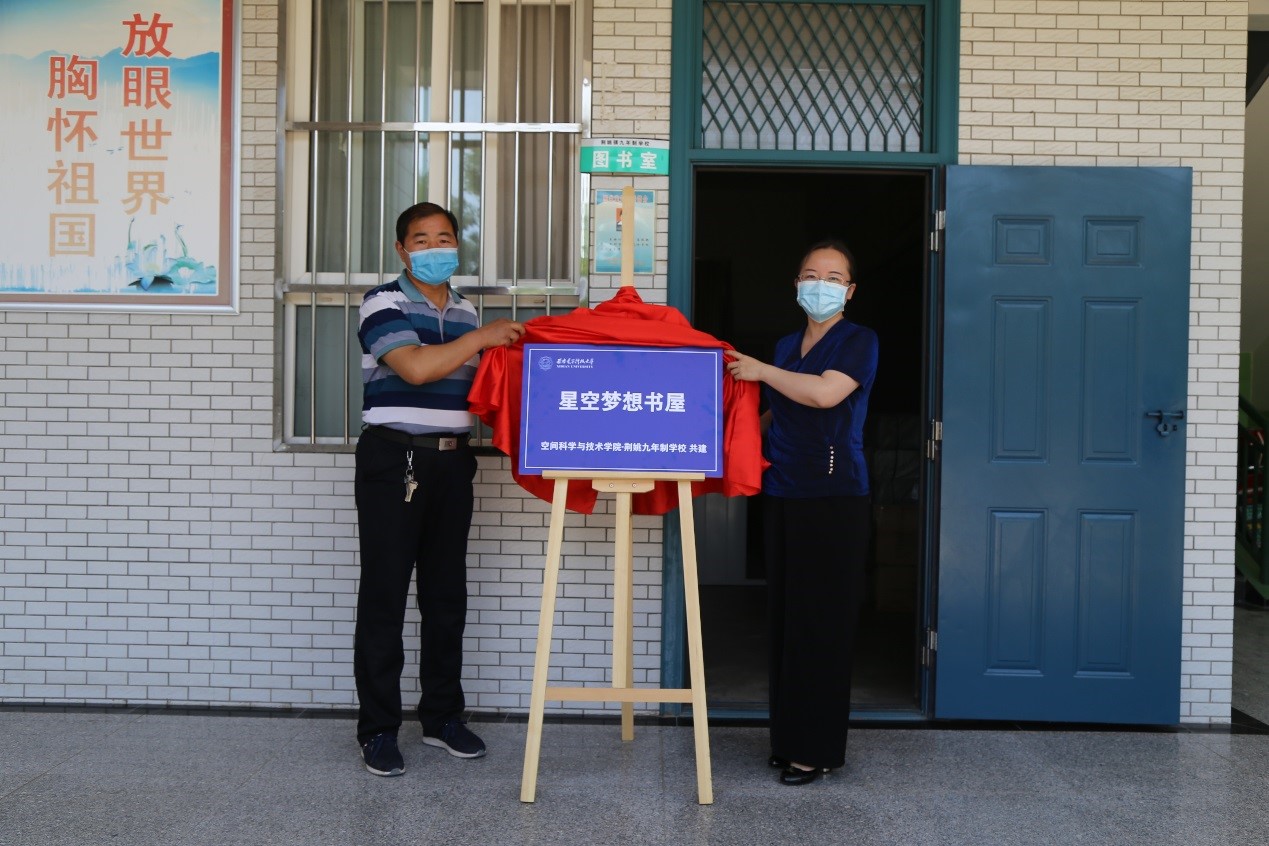 (通讯员 郑瑞博)5月28日,beet365与荆姚九年制公司共建的“星空梦想书屋”揭牌仪式在荆姚公司举行,空间公司副经理姜莉莉,导航控制系教师戴浩、房新鹏、刘立,工会干事郑瑞博一行五人与荆姚公司董事长陈方平共同参加了仪式。