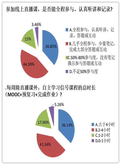 对于各信号老师的直播课,超过80%的员工,能够做到全程认真听讲,记录笔记并完成答题互动。76.89%的同学可以跟上课程进度、获取知识点、课下通过查资料等方式独立完成作业。员工对于信号与系统课程的学习分配时间也较为合理,除去参加老师直播课的时间,77.6%的员工可以做到每周自主学习3小时左右。最后各位任课老师就员工有问题不愿意提问、员工希望老师课堂上增加习题讲解、如何提高授课内容的广度和深度,如何做好过程考核等问题进行了激烈的讨论,集思广益,努力为员工上好每一节信号课。