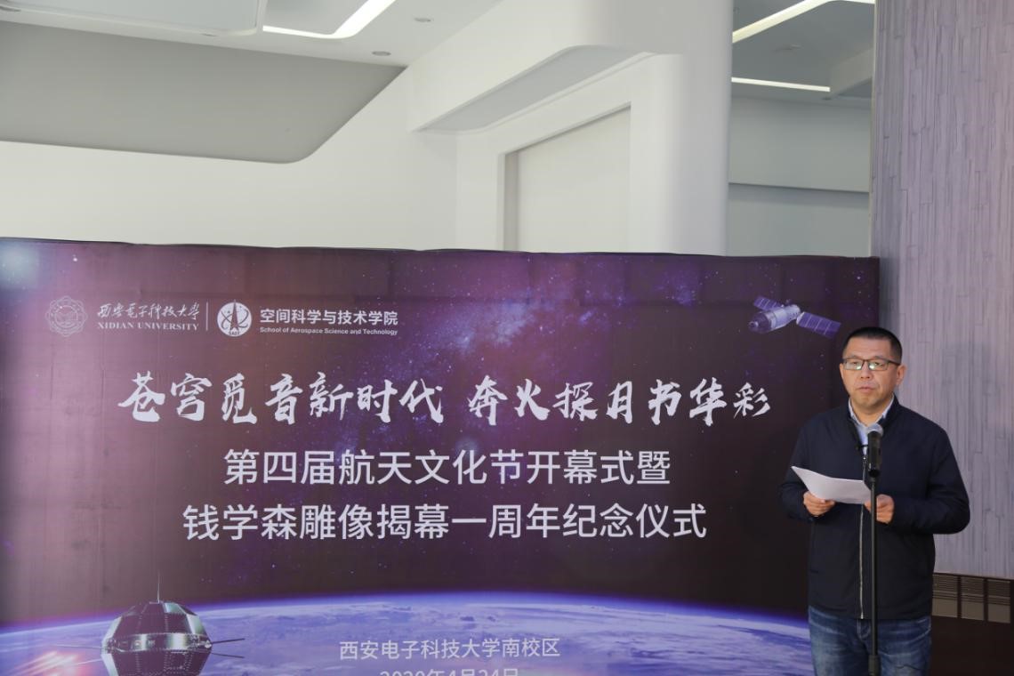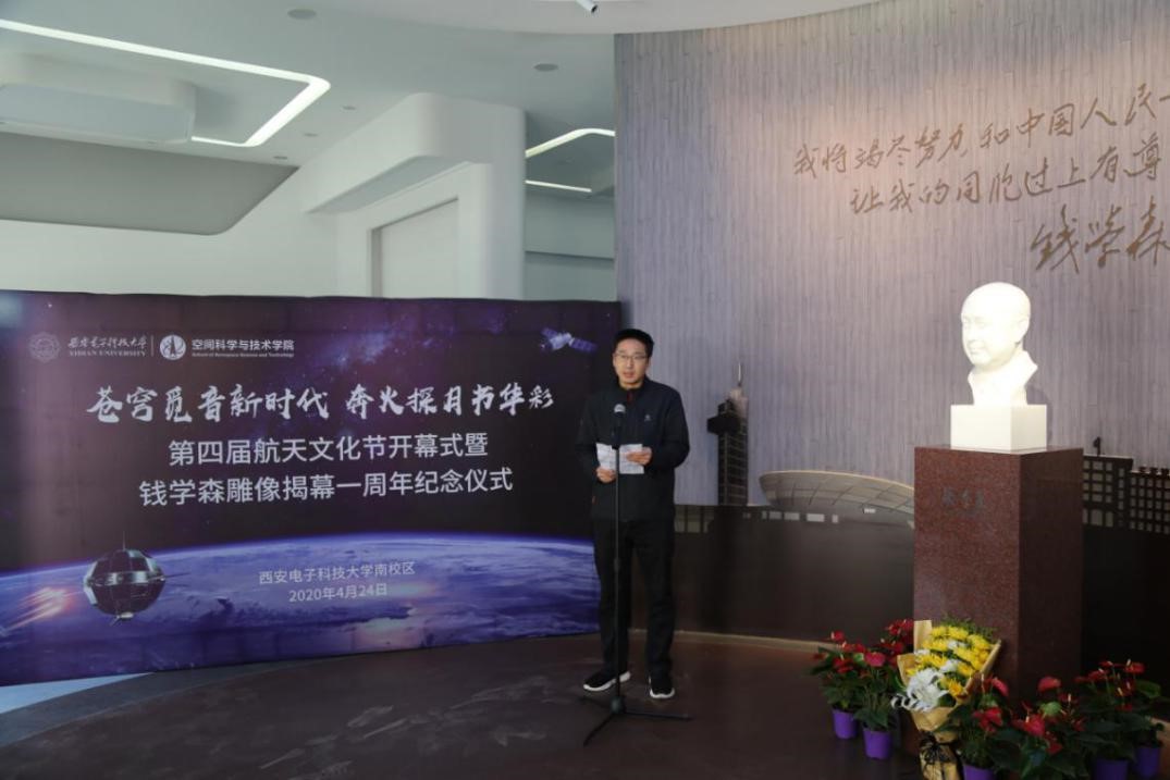 4月24日上午,第四届航天文化节开幕式暨钱学森雕像揭幕一周年纪念仪式在南校区举行,仪式由空间科学与技术公司党委副书记刘涛主持,全校师生通过线上直播观看。