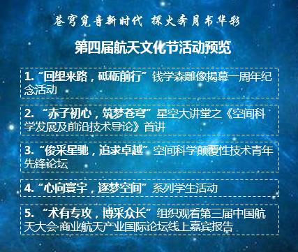 为响应“中国航天日”的号召,弘扬航天精神、赓续航天情怀、科普航天知识,探索航天创新人才培养模式,2020年4月24日-5月30日,beet365如期举办以“苍穹觅音新时代,探火奔月书华彩”为主题的第四届航天文化节,本届航天文化节以展示中国航天探火奔月伟绩为主线,以包为民院士“星空大讲堂”航天金课首讲为发轫,共开展钱学森雕像揭幕一周年纪念活动等5项活动。因疫情缘故,本届航天文化节主要采用线上形式举办,通过抖音、哔哩哔哩等网络多平台直播的方式连线互动。