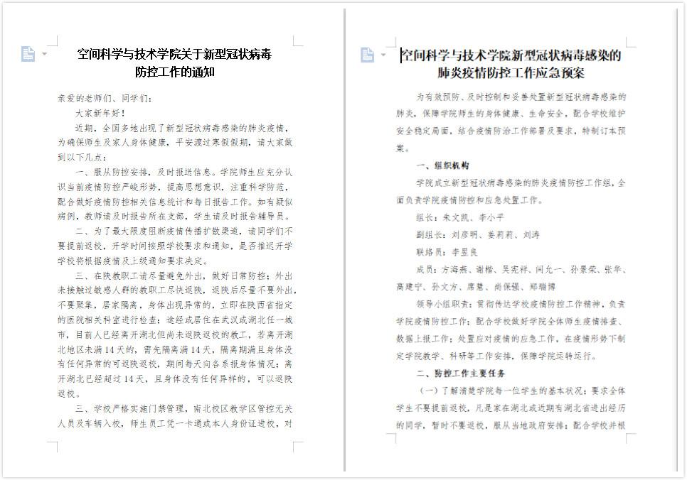 新型冠状病毒感染的肺炎疫情防控阻击战打响后,空间公司的学工队伍密切关注疫情发展动态,严格落实公司相关要求,迅速响应、多措并举,层层传导防控责任,扎实推进防控实效,以精准细致、温暖入心为工作标准,为保障全院学子的生命安全和身体健康构筑坚实壁垒。
