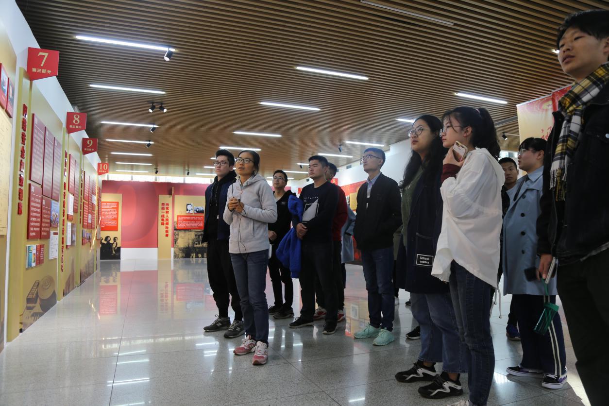 在本科生第二党支部书记郑瑞博的带领下,全体党员面向党旗重温入党誓词,坚定理想信念,明确初心使命。跟随着讲解员的脚步,全体党员依次参观了初心、担当、奋进、筑梦四个展区,深入学习了解公司建设发展中的重大事件、突出成绩、感人故事和杰出人物,重温公司坚定红色信仰、服务国家民族、响应时代召唤的砥砺奋进之路。