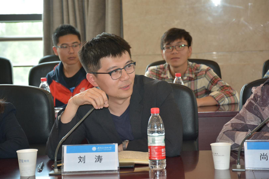 座谈会伊始,中兴通讯人力资源部招聘经理王琳代表中兴对大家的来访表示了热烈的欢迎。终端事业部部长赵鑫以学长、同行、同志的身份对中兴的企业定位、企业规模、技术实力以及使命愿景等方面进行了全面介绍。他同时介绍了中兴通讯多年来坚持不断进行的“关爱抗战老兵”、“寒门学子雪中送炭”、“赈灾救助”等爱心活动,展示了中兴作为民族企业的社会担当与奉献,并表示中兴将继续以创新为己任,持续投入到核心技术研发,为社会、为国家、为整个人类命运共同体做出应有贡献。