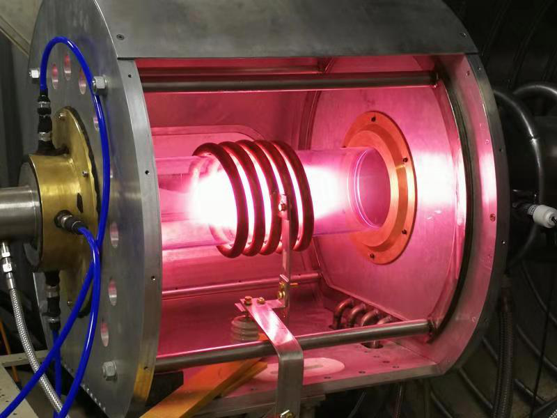 下午16时,校领导与专家首先参观了多物理环境电磁力热实验室。空间公司副经理刘彦明教授详细介绍了多物理环境电磁力热实验室的建设过程、支撑科研方向、关键技术和实验能力及重点装置的研制进度。实验室以国家自然科学基金重大科研仪器研制项目“临近空间高速目标等离子体电磁科学实验研究装置”为中心,针对具有强碰撞、非均匀和高动态特征的等离子体电磁科学研究需求,研制满足等离子鞘套电磁特征的等离子体产生、诊断、控制和电磁测量一体化科学实验装置,形成涵盖高速目标等离子体电磁特征研究能力的科学实验平台,填补了该领域科学实验仪器的空白。团队演示了装置的氩气等离子体点火试验。真空系统、冷却水系统、高频电源等各子系统准备就绪后,包为民院士“点火”一声令下,装置开始工作,等离子体发生器产生高密度高温等离子体流场,真空实验腔体喷射出等离子流场火焰,装置点火成功,达到预期阶段研制指标,标志着研究项目取得了实质性进展。