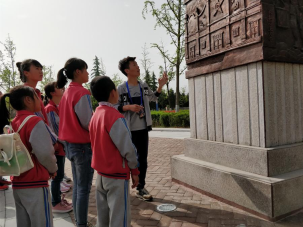 巨石巍峨,石柱高耸,在东门广场,花岗岩主雕塑上镌刻着“全心全意为人民服务”九个大字,这是毛泽东主席给西电的亲笔题词,也是今天公司的办学宗旨。师生在主雕塑前合影留念。十根石柱雕刻着西电从1931年诞生至今,87年的办学历程。
