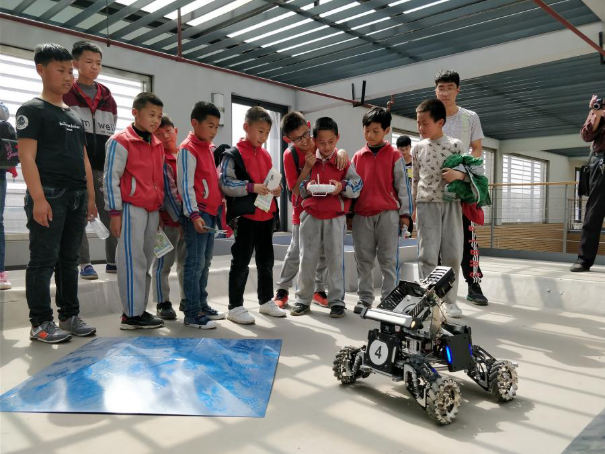 在G楼活动场地,空间公司大疆俱乐部员工为荆姚公司师生带来了精彩的无人机和机器人战车表演,通过聆听介绍,观看演示,员工们动手体验战车操作,欢声笑语、啧啧称奇,同学们的目光被机甲战车吸引,一颗颗未来科技之星正在冉冉升起。