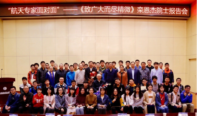 报告会上,年近杖朝之年的栾院士以饱满的热情带来了将近两个小时的报告,从国学与哲学的新颖视角,细致分析了中外航天发展的同异及差距,生动展示了航天领域最先进的突破与成就,从我国航天事业开始了“焕新”的时代、战略思考与创新驱动的紧迫性、战术安排与创新过程的渐进性延伸到技术人才队伍建设,从我国航天产业的优势讲到我国航天产业的发展历程,并通过如LiGo首次探测到引力波存在、天文观测发现距地球最近的系外行星等近几年影响重大的航天科技领域的大事件对他报告中所提出的观点进行生动的论证,并深情寄语在场师生:要成为那些“冷下来时还在坚守的人”,在前沿性科学、颠覆性技术上有所成就,不忘初心,牢记使命,为国家、为民族时刻抱有这份使命感和责任感,让中国加强国际影响,引领国际航天方向。