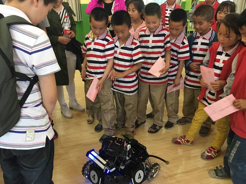6月9日下午,空间公司中级党校的学员以及各支部员工党员一起,将自己的爱心捐赠递到了孩子们的手中。虽然金额不大,但温暖的话语和点滴的爱心也足以拉近彼此心的距离。此外,他们冒着雨一趟趟地把公司捐赠的科普知识展板搬到了梦想教室外的走廊,并认真组装,想用自己哪怕微不足道的劳动为这里的孩子们再做些什么;拿出从公司带来的机器人战车,这些他们平时司空见惯的活动用具,却引起了孩子们的阵阵惊叹与欢笑,为他们打开了领略科技世界的一扇窗。
