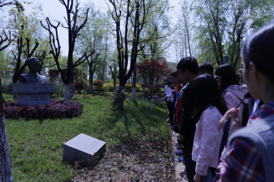 午后,同学们登上前往五O四所的大巴。在车上,带队老师强调了此次出行的注意事项,提醒同学们遵守保密单位相关规定,文明参观。由于人数较多,同学们分为两队,一队首先参观五O四所园区。在工作人员的带领下,同学们从英才广场出发,经过丰碑广场,巨大的航天标志映入眼帘。在航天雕塑下,工作人员详细说明了五O四所的建立时间、发展历程和困难与成绩。随后,大家来到智慧广场,在智慧广场中,工作人员重点介绍了航天先烈陈芳允(1916.4.3-2000.4.29 ,浙江台州黄岩人,无线电电子学家,中国卫星测量、控制技术的奠基人之一,“两弹一星功勋奖章”获得者,中国科公司院士,中国科学技术大学和国防科技大学教授,“863”计划的发起者之一)的故事,在陈老的雕像前,所有员工们驻足沉思,重温了峥嵘岁月中那些不平凡的往事,也为航天人勇于拼搏、敢于争先的精神而感动。