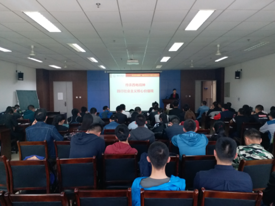 在专题报告中,吴秀霞老师从“为什么要提出践行核心价值观”、“如何将核心价值观内化于心”和“核心价值观与西电精神”三个方面对社会主义核心价值观的提出背景、内涵意义和实践途径进行了阐述。首先,吴老师从国家、社会和个人的角度,用丰富的时政事例和自己工作学习中的经历引出了社会主义核心价值观的概念,具体分析了核心价值观的丰富内涵。关于如何践行社会主义核心价值观,吴老师认为,培育和践行社会主义核心价值观是一项系统工程,关键要解决“信”和“行”的问题。在日常的学习生活中,青年员工必须立足中华优秀文化,讲仁爱、重民本、守诚信、崇正义、尚和合、求大同,积极参与社会实践和志愿服务,在群体中发挥榜样的示范引领作用。最后,吴老师还用六则西电校史中的小故事带领同学们回顾了母校成长发展的峥嵘岁月和光辉历程,半部电台起家的历史让同学们对于艰苦奋斗、自强不息、求真务实、爱国为民的西电精神有了更深的体会。勤学、修德、明辩、笃实,将社会主义核心价值观内化于心、外化于行需要每一个践行者持之以恒的努力和不忘初心的坚持。