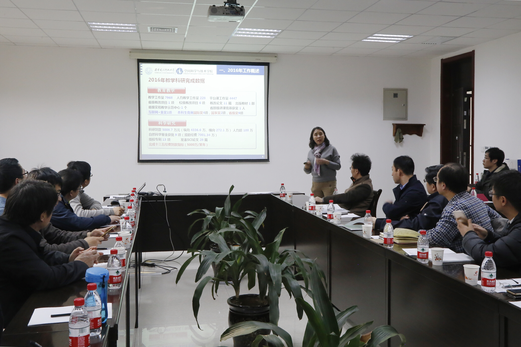 包为民在听取汇报后发表讲话,他从本科人才培养、研究生教育、公司科研方向、教师个人发展等各方面工作进行了动员和部署。他表示:“2016年是我们空间公司成立的第三年,三年的时间里,大家为了同一个目标,同心协力、积极进取,公司实现了跨越式发展。目前公司面临着重大的发展机遇与挑战,但应意识到目前还存在问题和不足,应该保持危机意识,与时俱进,开拓视野,‘一个山头接着一个’,突破自我,实现飞跃。”