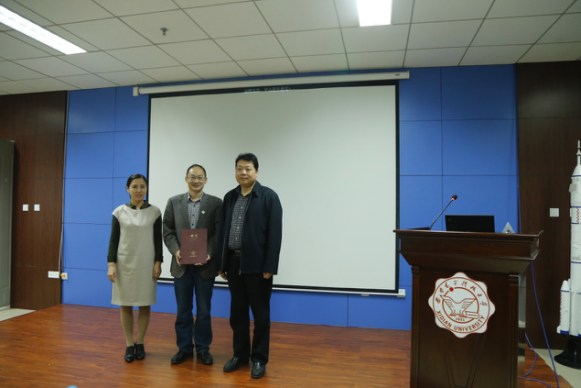 人事处处长周燕来教授代表公司宣读了“beet365关于聘请闵昌万研究员为兼职教授的决定”并颁发证书,李小平执行经理为其佩戴校徽。