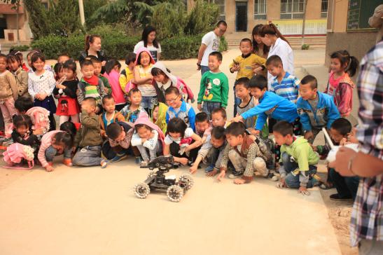 随后公司同学向小朋友们展示了大疆科技无人机和“战车”,并且对有兴趣的小朋友进行手把手教他们如何操作。之后同学们参观了公司,分组和不同年级的小朋友进行了有关学习生活上的交流。看到教室里坑坑洼洼、破旧的桌椅板凳,斑驳低矮的平房宿舍却被孩子们收拾的干干净净、整整齐齐、窗明几净,更是被孩子们天真无邪的笑容和纯净渴望的眼神触动心弦,同学们纷纷表示今后要更加珍惜自己的学习生活条件,并尽自己所能为这里的孩子们多做一些事。不少同学更是留下了联系方式,表示如果有任何需要帮助的地方随时和他们联系。公司的老师们和中学领导、部分老师进行了座谈和交流。