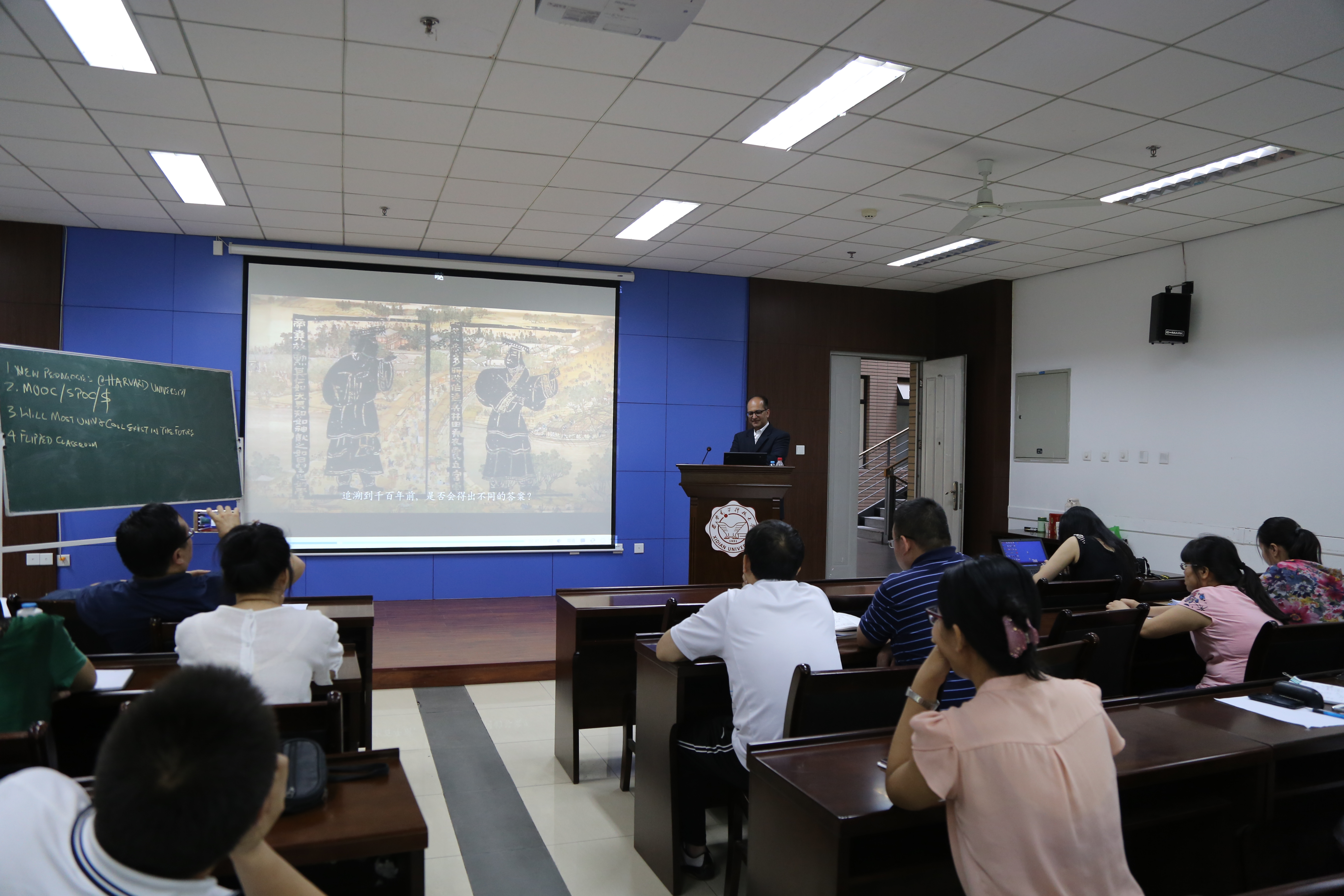 7月4日下午,Malik Hussain在南校区G楼240报告厅进行了题为“Pedagogical Innovations: A Personal Experience from Harvard University”的教学研究报告,重点讨论了哈佛大学的课程教学方法创新,并展示了哈佛大学的Canvas学习管理系统,以哈佛大学的ChinaX项目为例重点讨论了哈佛大学的MOOC设计实施过程。通过现场系统讲解和视频展示,Malik Hussain充分展示了哈佛大学进行高质量教学设计的方法,其丰富和高效的教学IT支撑系统也令人印象深刻。