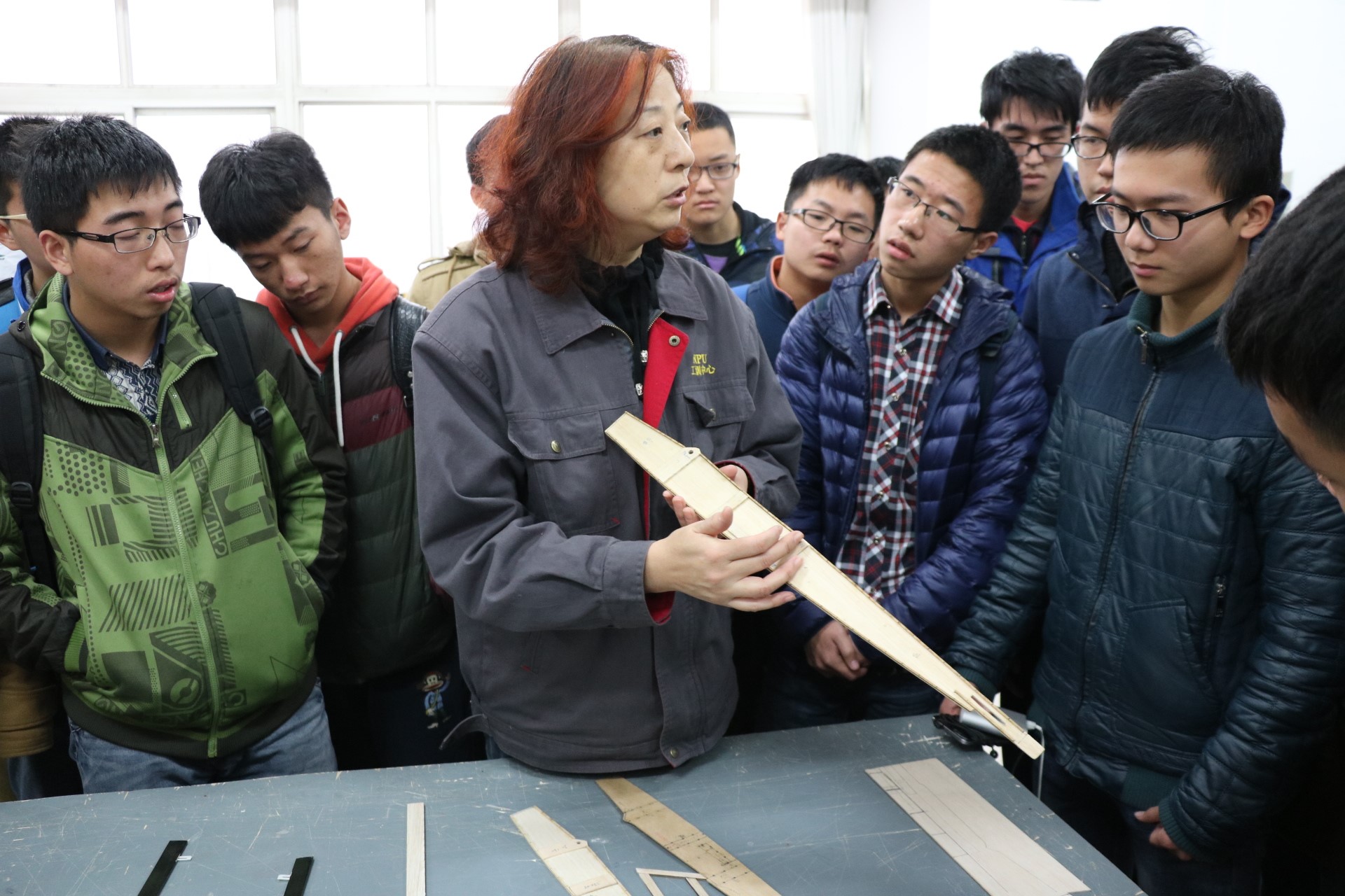 最后,员工们来到了航模制作实验室。参观了西工大同学制作的样品,造型优美,工艺精湛。杨老师告诉我们,航模制作工艺复杂,精度要求高,同学们要把实践与理论相结合,在动手制作的过程中,学会自主思考,学会自主解决问题,那么才会真正的学会创新。