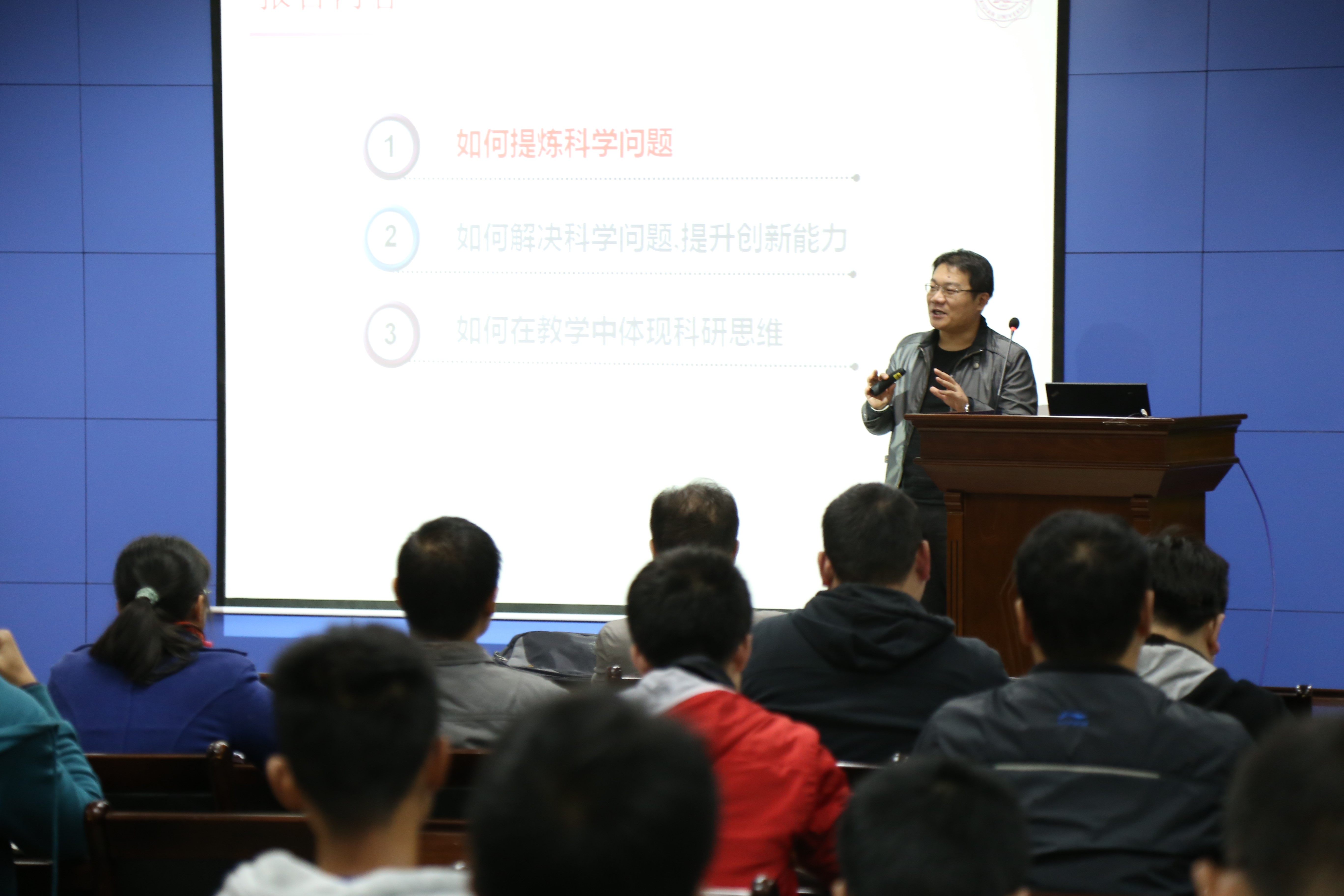 活动中,陈为胜教授结合自己多年来教学科研工作的经验,就科学问题提炼、科学问题解决及创新能力提升、教学中体现科研思维等三方面分享了自己的心得体会。鼓励青年教师,立足时代背景,面向人类和国家需求,选择感兴趣、顶天立地的研究方向。同时,敢于“亮剑”,将“聪明之处”展示给同行专家,通过交流讨论激发创新灵感。随后,以钱学森空间科学实验班《高等数学》课程讲授为例,演示创新思维教学模式,指出每堂课中的知识点都是所处的那个时代的一个创新,教师应该把该知识点的创新过程还原给员工,注重讲授知识的发现过程,激发员工兴趣,而不是简单的传授知识。