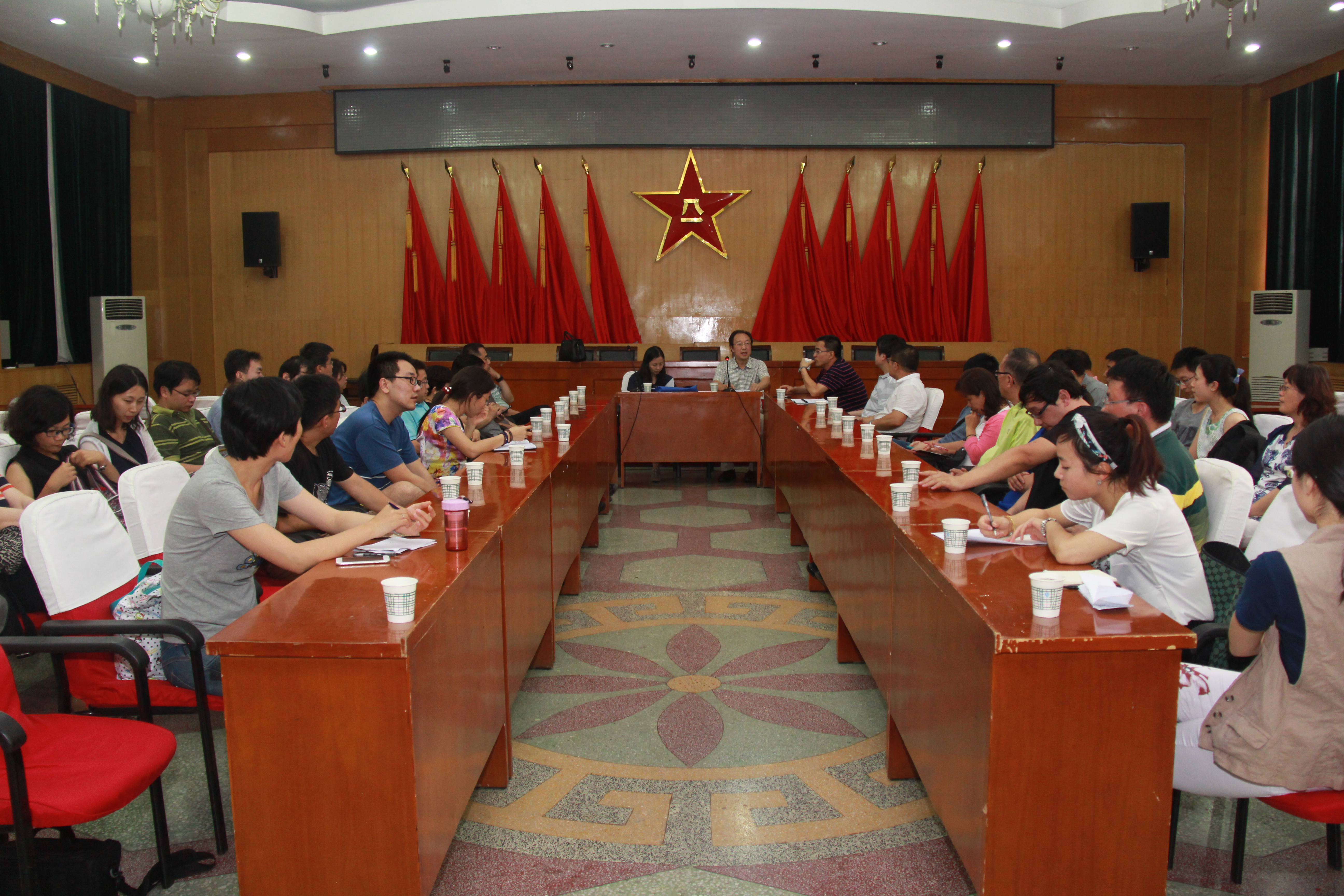 参观结束后,全体人员来到卫星测控中心的会议室开展了“三严三实”专题报告会,公司党委书记梁玮以“三严三实”为主题做了工作报告。报告会结束后与会人员就公司的人才引进和人才队伍建设进行了专题研讨。