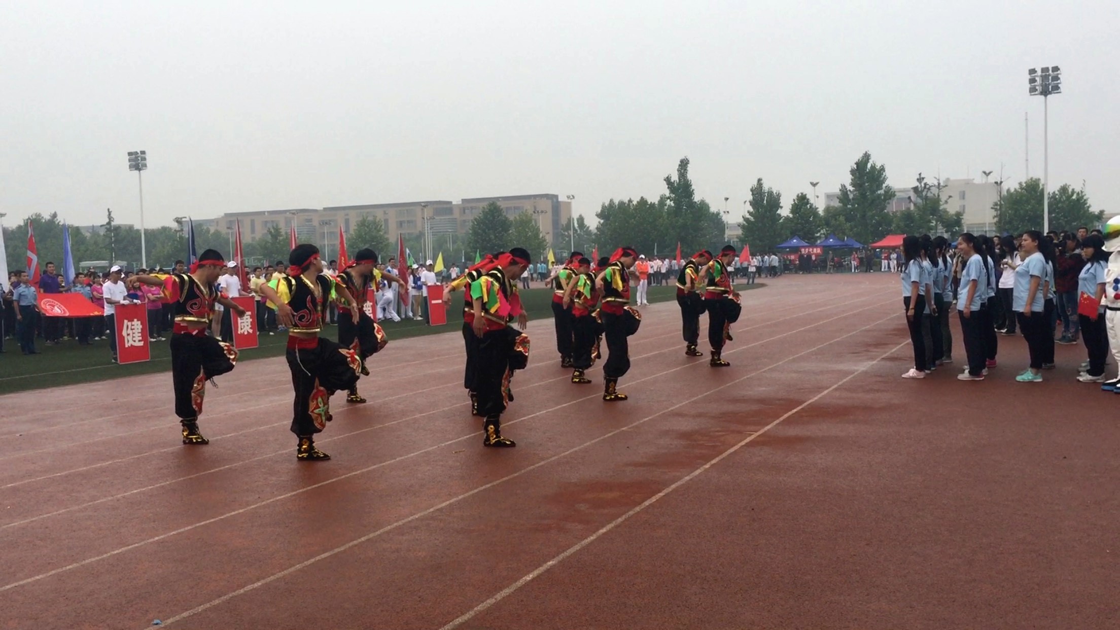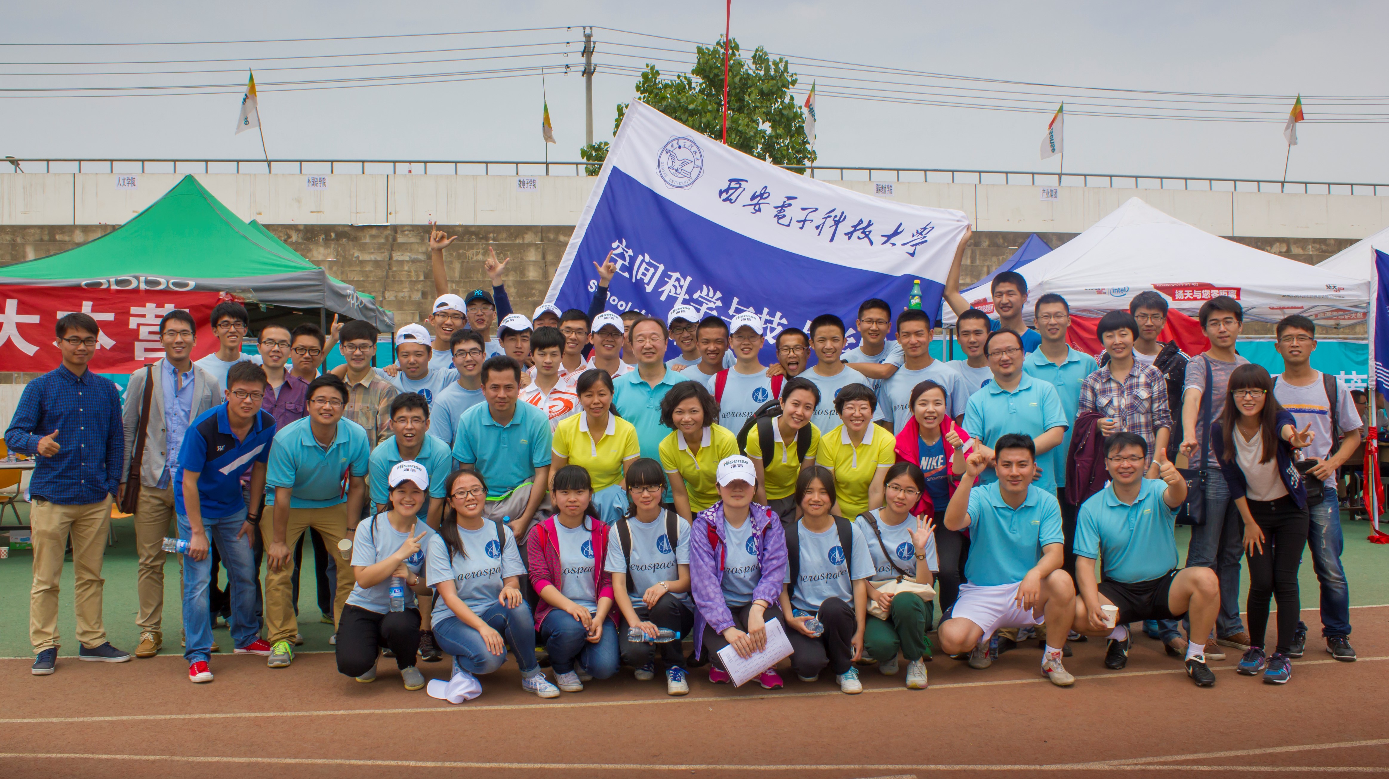 5月22日上午8点30分,beet365第37届员工运动会、教职工运动会在北操场隆重开幕。开幕式上空间公司作为第13个方队出现在主席台时,全场的眼光都投向了这支团结一致、新颖靓丽的队伍,方阵摆出了辽宁号舰载机的形状,配合着辽宁号舰载机起飞的动作指令,三架航模从队伍后方腾空而起,用彩烟在天空中留下了美丽的印迹!随后方阵队伍的队形转变为直插云霄的火箭,随着321的发射指令,由女生方阵代表的“火箭返回舱”成功“着陆”在“内蒙古草原”上,公司舞蹈队的同学们身穿华丽的蒙古节日盛装闪亮登场,载歌载舞欢庆“空间一号火箭”的“成功发射”,此时全场掌声雷动,主席台上的领导嘉宾随着音乐节奏一起击掌打拍,最终空间师生以富有创意、精彩新颖的开幕式表演成功卫冕了开幕式最佳创意奖,这样的荣耀属于每一个为之努力付出的空间人。