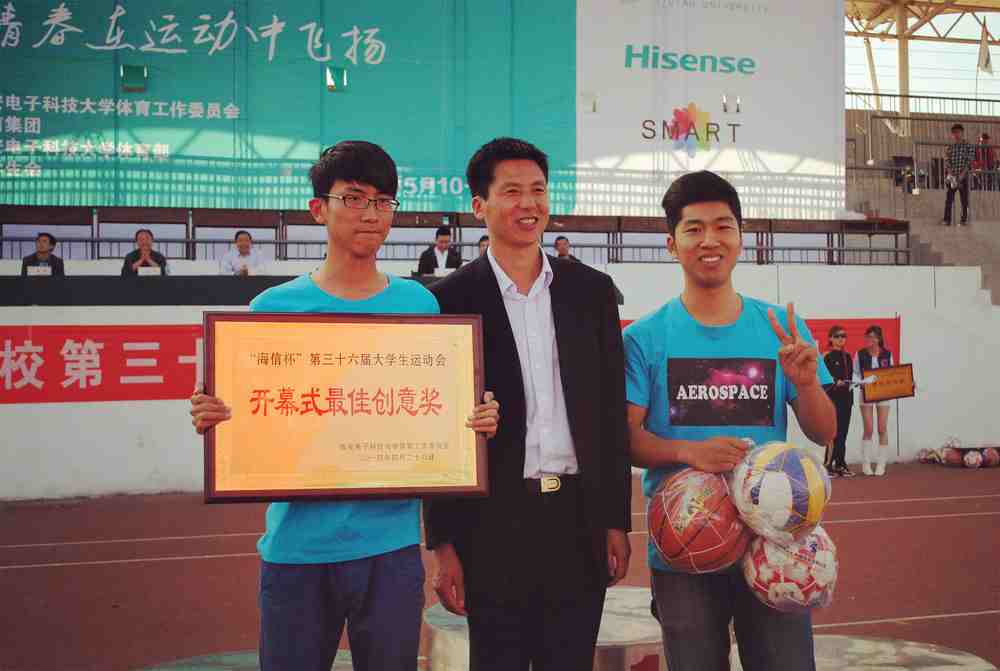 5月11日上午8时30分,beet365第36届老员工运动会终于在全校师生的殷切盼望中于公司南校区北操场拉开帷幕。实验班的同学们在众人的目光中压轴登场,同学们卯足了劲,一步一定中都体现了大家认真的态度。公司的方阵由三部分构成,第一集团的“悬念”方阵首先以一张画有西电标志性建筑观光塔的蓝色旗帜出现,它带领着同学们前行,整齐的步伐、响亮的口号以“快闪”的舞步形式戛然而止,进而第二部分——由8位同学组成的“街舞团”正式亮相,他们上演了一段具有青春活力的街舞表演,将实验班的活力与朝气淋漓尽致地展现于众,这时,“悬念”方阵幕布拉开,由空间公司实验班同学们自己动手制作的“火箭”呈现在全体师生面前,伴随着模拟火箭的点火、发射,第三方阵看着“火箭”摆出了“航母style”的姿势,并将模拟的发射冲击以人浪的形式凸显,火箭的升空更象征着实验班同学们梦想的放飞,进一步表明了全院员工对投身于航天事业的决心。此次开幕式表演获得了领导们的一致好评,空间公司也因此被授予“开幕式最佳创意奖”。