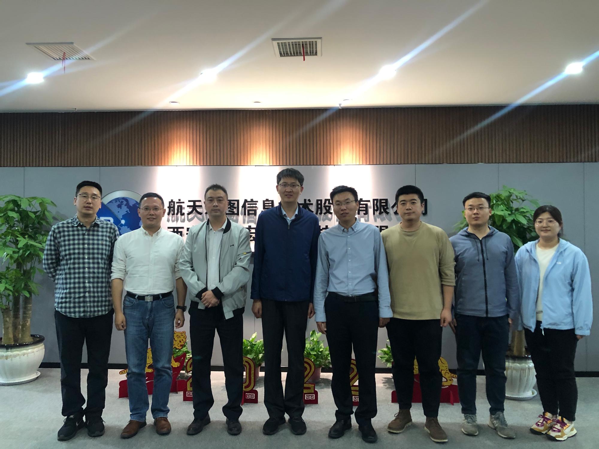 随后,在西安航天宏图信息技术股份有限公司,朱伟一行参观了航天宏图数据部与研发中心。航天宏图副总经理苏永恒在座谈会上详细介绍了公司现状及未来发展规划,他表示,作为首批科创板上市的遥感应用企业,公司致力于面向政府、企业、高校等开展卫星数据服务。在未来的发展中,公司将进一步加深与西电空间公司的科研合作,为高校科技成果转化做好服务,希望空间公司能输送更多优秀学子到公司实习、就业。座谈期间,航天宏图还展示了其最新的遥感图像处理研发成果。