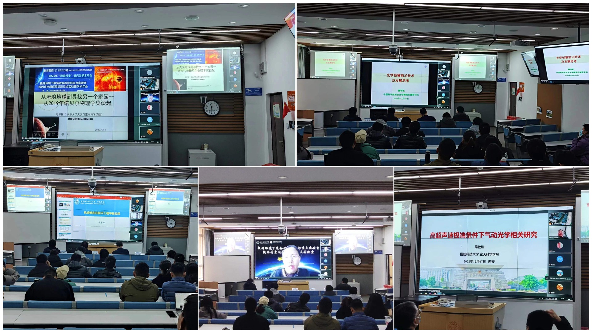 活动邀请国防科技大学易仕和教授、南京大学周济林教授、北京航空航天大学李惠峰教授、西安光学精密机械研究所樊学武研究员和航天科技集团五院西安分院李浩研究员等五位专家做学术报告。五位专家围绕太赫兹遥感技术、轨迹规划技术、高超声速气动光学研究、光学侦察载荷技术及系外行星探测技术等方向,系统梳理了相关技术的研究背景、发展现状,深入探讨其在航空航天领域的应用场景与未来布局。专家们的报告高屋建瓴、聚焦前沿,报告内容与重点实验室研究方向以及公司十四五重点领域高度契合,引起了线上线下人员的广泛共鸣同时也拓展了公司青年教师及研究生的学术视野。