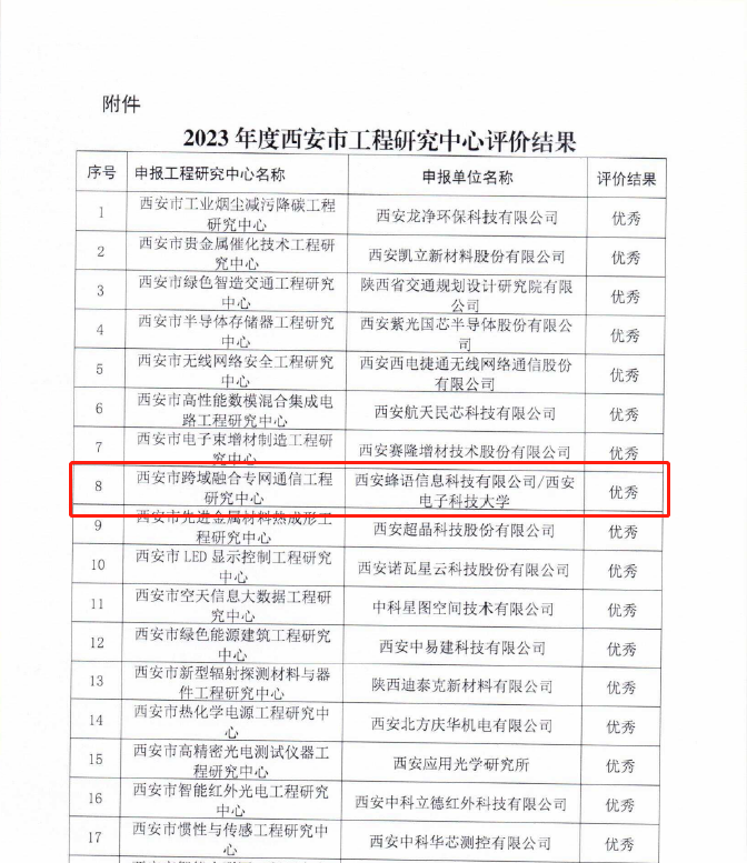 (通讯员 尚保强 徐晗)近日,西安市发展和改革委员会公布了2023年度西安市工程研究中心评价结果,西安市跨域融合专网通信工程研究中心获得了优秀评级。