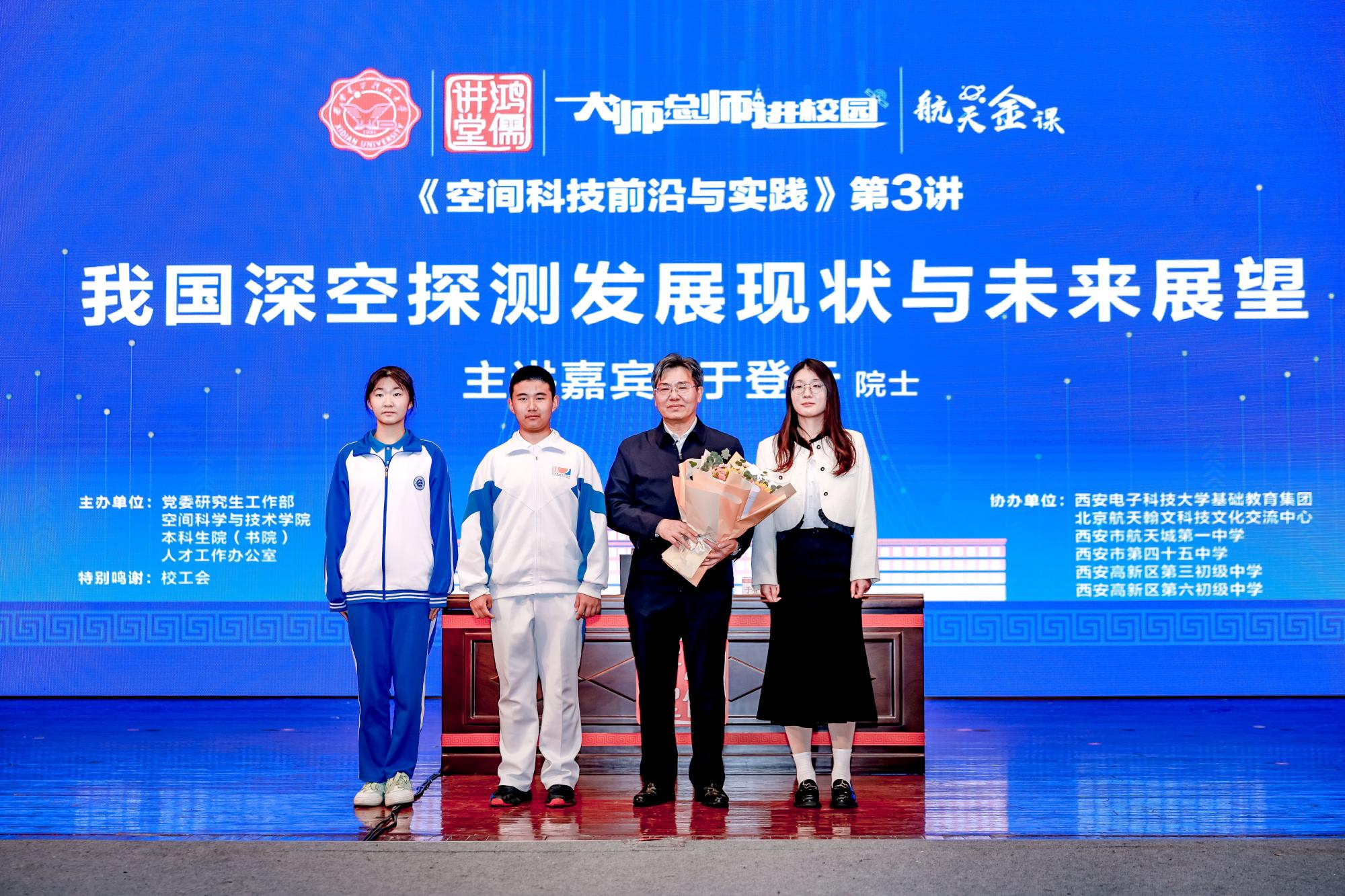 10月17日上午,中国科公司院士、中国航天科技集团科技委副主任、中国探月工程(四期)总设计师于登云以《我国深空探测发展现状与未来展望》为题讲授《空间科技前沿与实践》第三讲课程,中国航天科技集团国际交流中心航天人才教育培训部负责人王娟,北京航天翰文科技文化交流中心副主任韩帅,党委研究生工作部、基础教育集团、beet365的主要负责同志参加活动。此次课程是中国科协“科普中国”系列活动,也是公司“大师总师进校园”及“鸿儒讲堂”系列活动之一,来自钱学森空间科学实验班、北校区研究生代表、西电附中、西安市航天城第一中学、西安市第四十五中学、西安高新区第三初级中学、西安高新区第六初级中学的师生共计1000余人聆听了这场航天思政金课。报告会由公司党委常委、宣传部部长季庆阳主持。