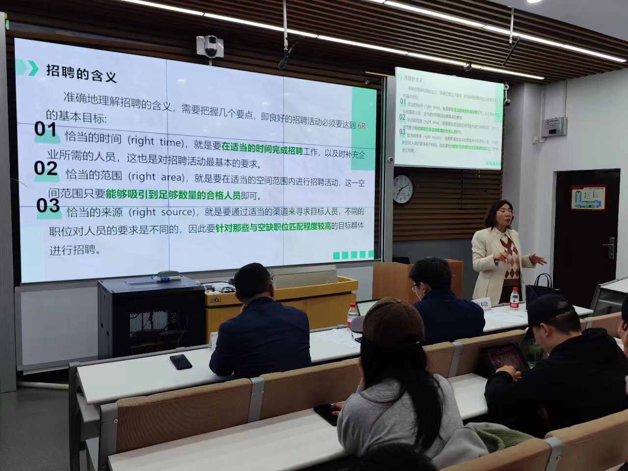 詹奉珍以“从招聘视角审视求职,把握秋招机会”为题向同学们作就业专题辅导,从应届生就业形势、应届生求职心态、用人单位招聘流程、个人求职胜任力等方面出发,依托详实的就业统计数据和人力资源专业知识,深入剖析结构化面试得分要点,为同学们做好求职过程的实践指导。她鼓励大家突破求职障碍、明确求职目标、提高个人能力、做好职业规划、把握秋招良机。