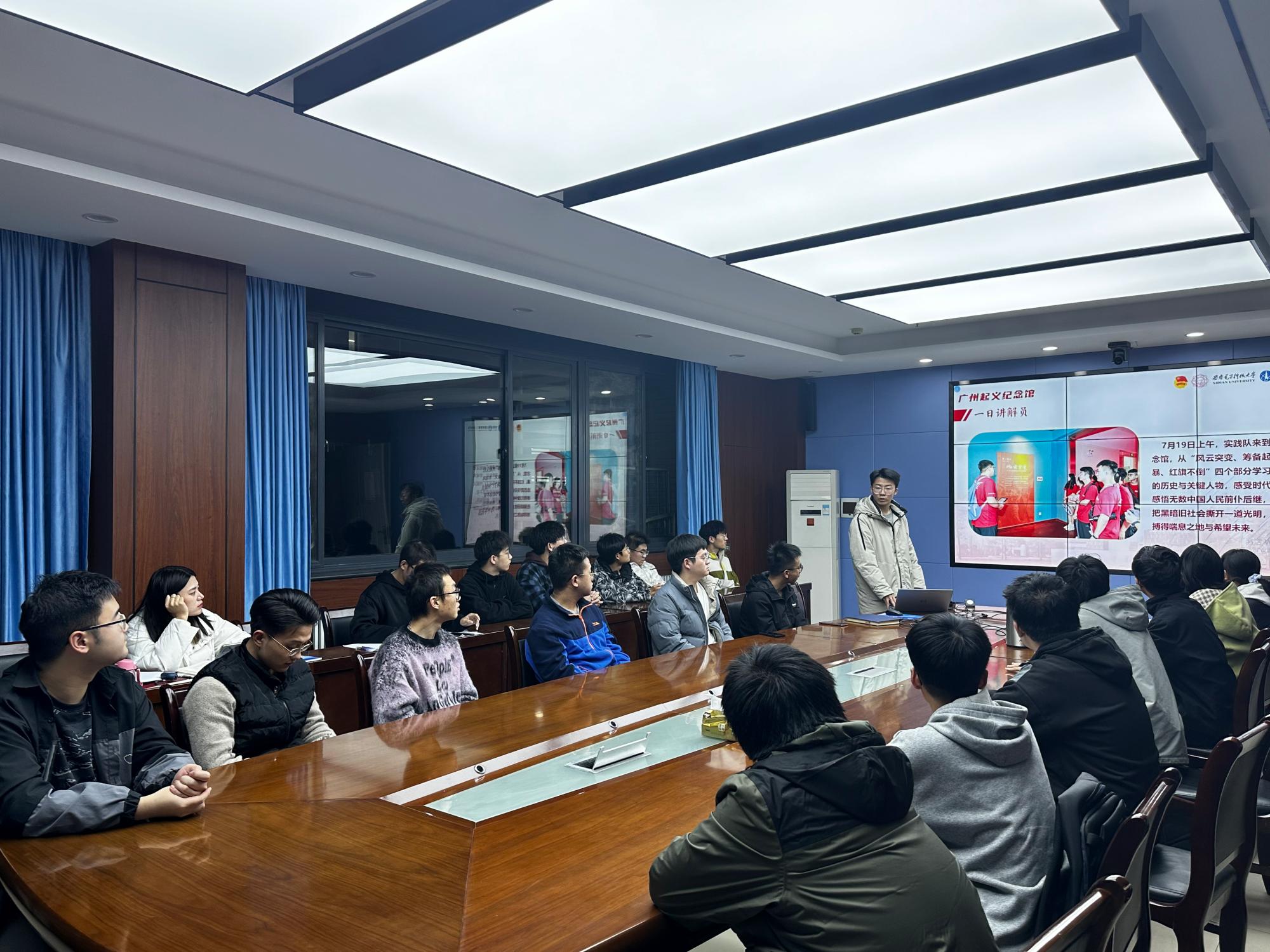 “在广州市‘团一大’纪念馆,实践队员们共同策划组织了一场‘青春分享会’主题团日活动,在交流实践感悟的同时畅谈自己的理想追求与发展规划……在西电广研院,实践队参观了广州第三代半导体创新中心、研究院科技成果展厅以及教学科研场地,全面了解研究院建设发展历程、人才培养模式、科技创新进展和成果落地实效,深刻体悟西电融入国家重大战略主动作为的担当精神……”,活动现场,“航天筑梦之旅”社会实践团广深线负责人任晨浩从“追寻革命足迹,赓续红色基因”“探寻科技前沿,汲取奋进力量”“传承航天精神,担当时代使命”三个维度详细回顾了实践活动的整体过程。