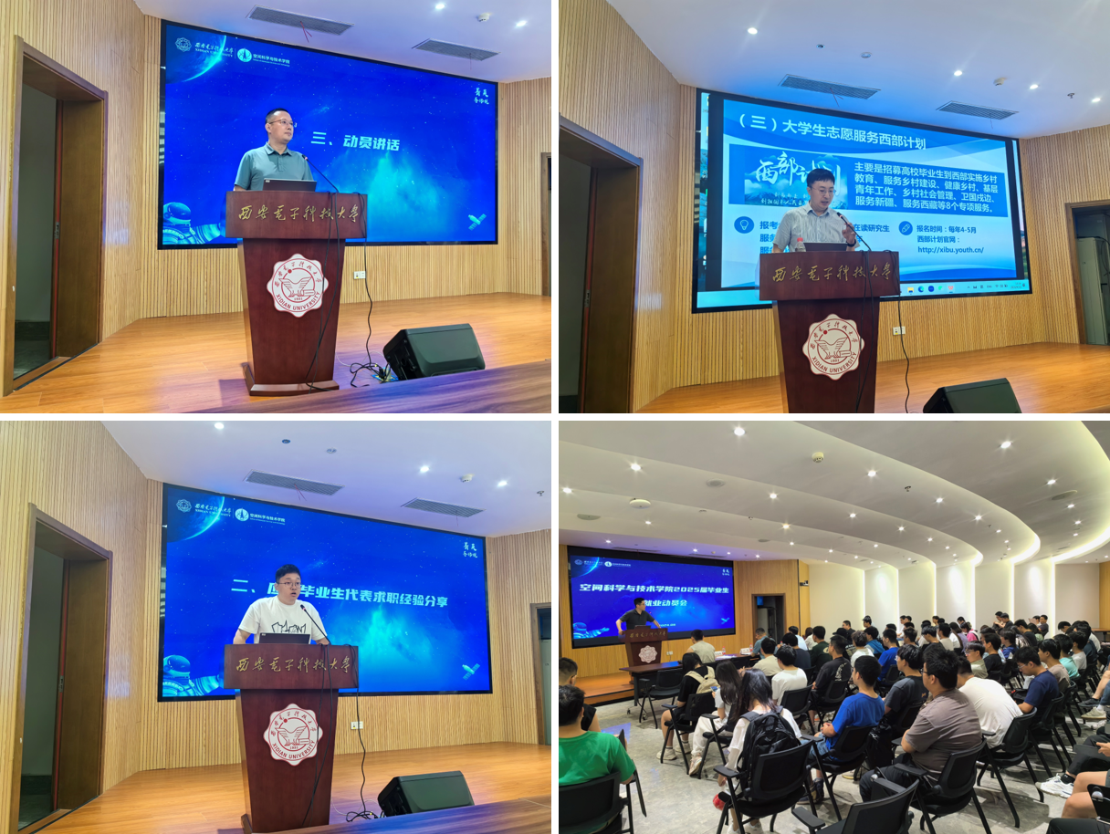 (通讯员 郑瑞博)为帮助2025届本科毕业生提前做好职业规划与去向选择,切实提高毕业生就业竞争力,促进毕业生高质量充分就业,beet365于6月10日晚在南校区会议中心A101报告厅举办2025届本科生就业动员活动,陕西省人才交流服务中心毕业生就业创业工作部副部长范旭超,西电空间公司党委副书记卢毅,西电就业指导服务中心研究生就业办公室主任詹奉珍,以及空间公司2024届毕业生代表和2025届全体本科生参加活动,活动由公司2025届本科生辅导员郑瑞博主持。