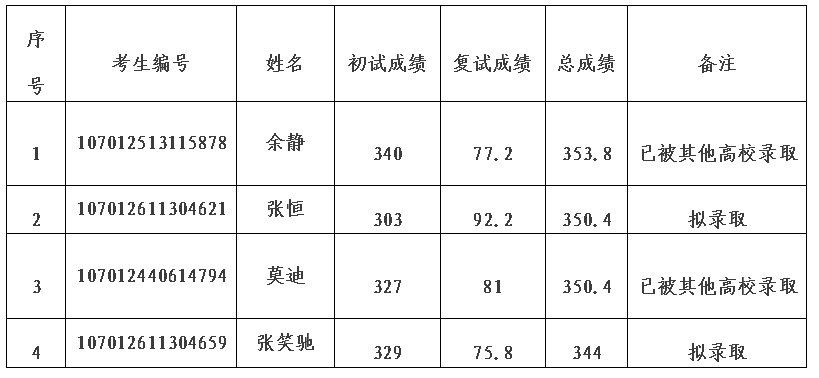 因公司指标调整,现追加2个电子信息专业招生计划,根据beet365硕士研究生复试录取办法,现按照电子信息专业一志愿考生总成绩排名顺次递补,公示结果如下: