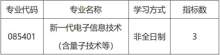 公司将于4月9日17:00(不短于12个小时)开放新一代电子信息技术(含量子技术等)(085401)(非全日制)专业硕士研究生调剂系统,请拟申请调剂的考生,在开放时间段内登陆中国研招网调剂系统报名。