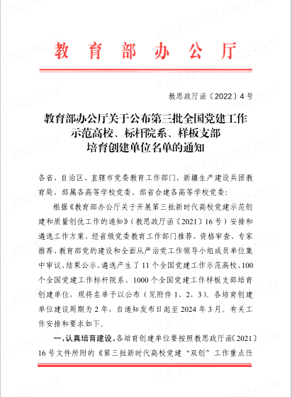 近日,第三批全国党建工作示范高校、标杆院系、样板支部培育创建单位名单公布,空间公司测控通信系教职工党支部入选全国党建工作样板支部培育创建单位。