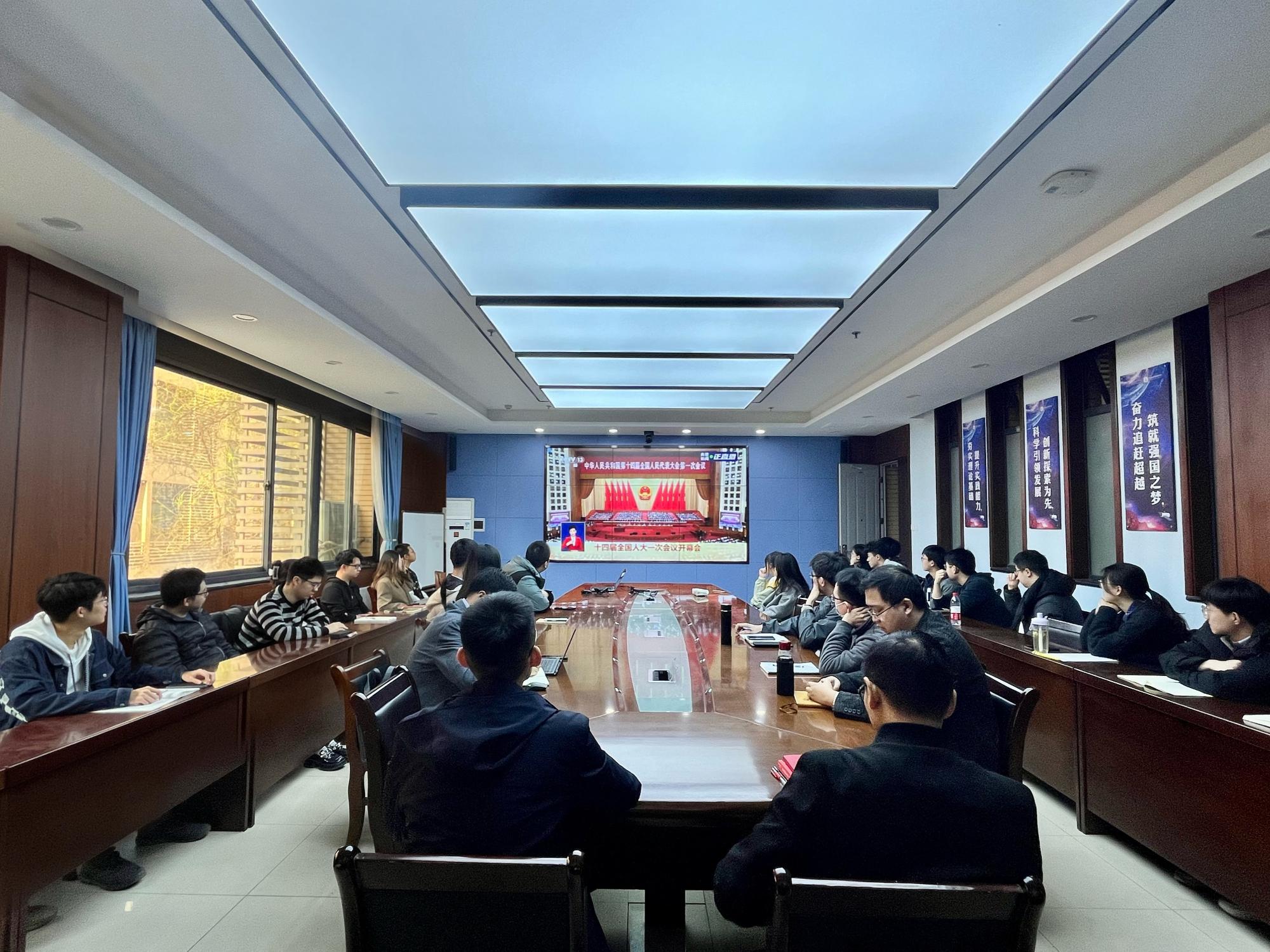 3月5日上午,空间公司党委在G251设置会场,公司党委书记朱伟、师生代表、团学骨干等集体收看第十四届全国人民代表大会第一次会议开幕会直播,公司师生倍受鼓舞,展开热烈讨论。
