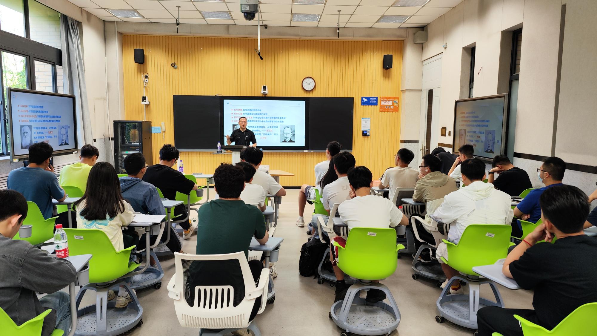 他指出,人无信不立,业无信不兴,国无信则衰。诚信是个人安身立命之本,亦是永葆科研之树常青的重要根基,广大科研工作者要把学术道德作为踏入科学研究的第一课,切忌急功而失诚、图利而失真。他鼓励同学们弘扬科学精神,恪守学术规范,力争在全社会形成尊重知识、崇尚创新、尊重人才、热爱科学、献身科学的浓厚氛围,为建设世界科技强国汇聚磅礴力量。
