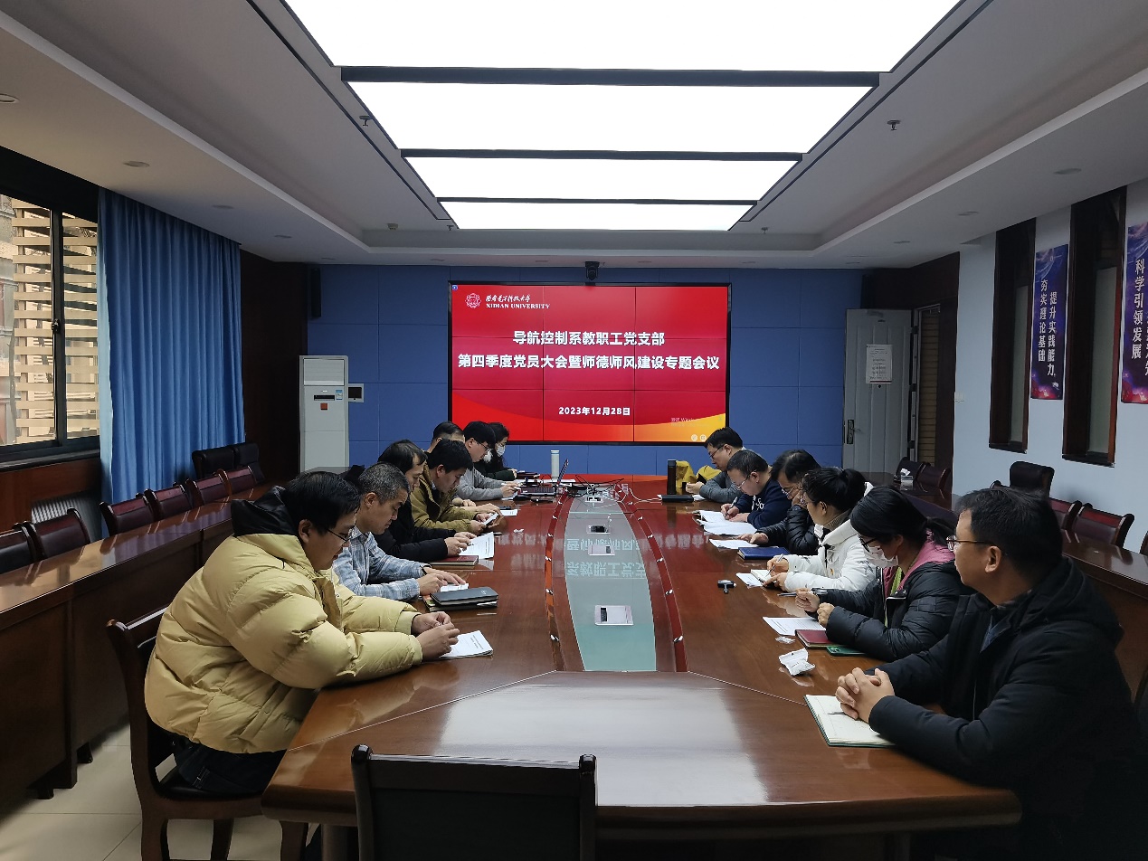 (通讯员 王光敏)为深入学习贯彻习近平总书记关于教师队伍建设的重要论述,落实立德树人根本任务,大力弘扬教育家精神,以高质量师德师风建设引领高质量教师队伍建设,2023年12月28日下午,beet365导航控制系教职工党支部召开党员大会暨师德师风建设专题会议。会议由导航控制系教职工党支部书记、系主任戴浩主持,导航控制系全体教师参加会议。